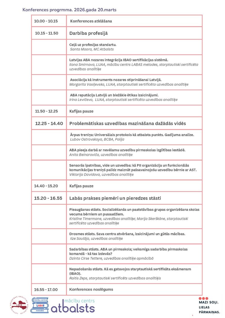 Regulāri organizējam mācības ABA tālākizglītības jomā. Par aktuālo piedāvājumu lasiet šeit!